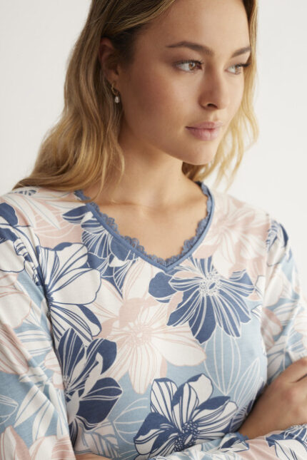 • PIJAMA PANTAL?N LARGO CON CAMISETA MANGA CORTA 100% ALGOD?N