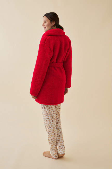 PIJAMA 3 PIEZAS PANTAL?N LARGO CON CAMISETA MANGA LARGA INTERLOCK PERCHADO INTERIOR. BATA TEJIDO PELUDO CON CINTUR?N