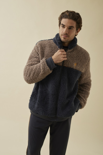 Home MEN PIJAMA 3 PIEZAS PANTAL?N LARGO PU?O CON CAMISETA MANGA LARGA INTERLOCK PERCHADO INTERIOR. CHAQUETA PELUDA CON CREMALLERA